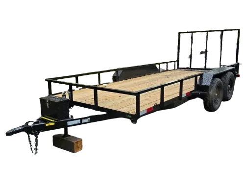 2025, 16' Utility Trailer, 7,000lb GVWR, LED lights, electric brakes, mesh fold down ramp, wooden deck planks, inside deck dimensions: 76" wide x 16' long.
